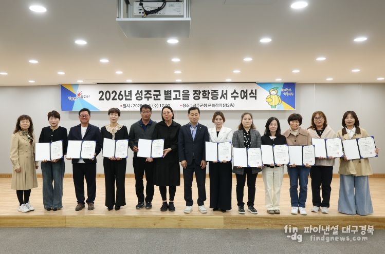 한편, 성주군은 이번 2026년 제1차 별고을장학생 선발을 시작으로, 9월중 초‧중‧고등학생 172명, 12월중 예체능 우수자 37명 정도를 추가 선발할 예정이며, 해마다 240여명의 별고을장학생을 선발하여 2억원 정도의 장학금을 지급하고 있다.