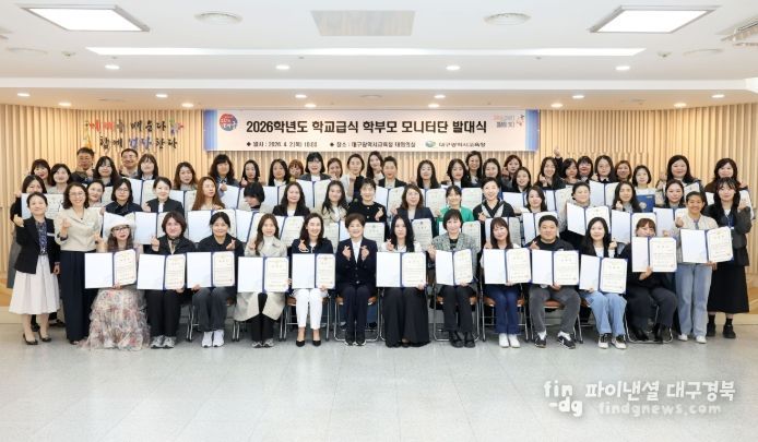 파이낸셜대구경북 김유신 기자 | 대구시교육청은 4월 2일 오전 10시 시교육청 대회의실에서 ‘2026학년도 학교급식 학부모 모니터단’(이하 모니터단) 발대식을 개최한다.