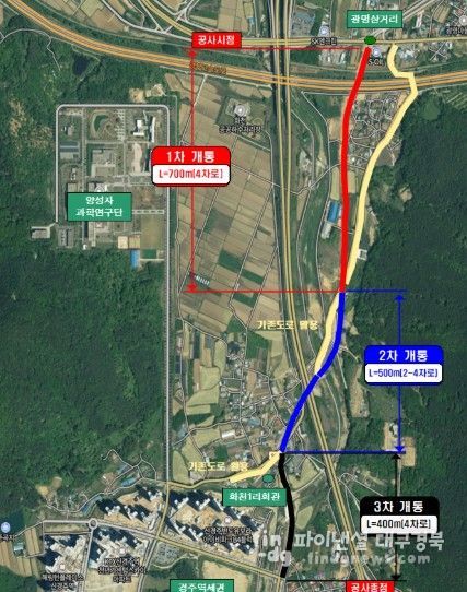양성자과학연구단 등 인근 산업·연구시설 접근성이 개선되고, 역세권과 생활권을 잇는 핵심 간선도로로 자리 잡을 전망이다.