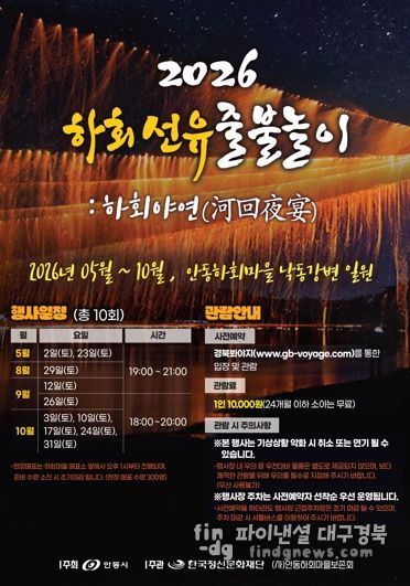 파이낸셜대구경북 기자 | 안동시가 주최하고 한국정신문화재단 및 하회마을보존회가 주관하는 안동의 대표 야간 관광 콘텐츠 ‘2026 하회선유줄불놀이’가 오는 5월 2일 첫 시연을 시작으로 화려한 막을 올린다.