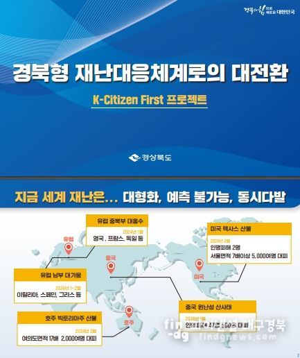 파이낸셜대구경북 강대산 기자 | 경북도는 재난의 일상화, 극한(대형)화에 따라 기존 관 주도 사후 대응에서 민 ・ 관 협력 사전 예방 체계 구축을 위해 도민 안전을 최우선 원칙으로 하는 ‘K-CITIZEN FIRST 프로젝트’를 본격 추진한다.