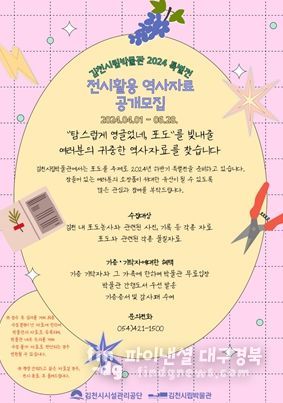 파이낸셜대구경북 이지원 기자 | 김천시시설관리공단은 오는 4월 1일부터 6월 28일에 걸쳐 2024 김천시립박물관 특별전 “탐스럽게 영글었네 포도”(가제) 에 활용할 역사자료를 공개모집한다.