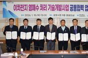 파이낸셜대구경북 김유신 기자 | 경상북도는 15일 포항시청 중회의실에서 이차전지 산업의 난제로 꼽히는 염폐수 처리 기술개발을 위한 업무협약(MOU)을 체결했다. 이번 협약은 대한민국 이차전지 산업의 글로벌 허브로 도약 중인 포항 지역의 이차전지 폐수 문제를 근본적으로 해결하고, 산업 경쟁력을 결정짓는 핵심 요소인 ‘염폐수 처리’ 기술을 확보하기 위해 마련됐다. 협약에는 경상북도, 포항시를 비롯해 ㈜범우, ㈜에코프로HN, ㈜테크윈, 효림이엔아이(주), ㈜유앤유, ㈜엔이비 등 기술개발 컨소시엄을 주도하는 6개 기업이 참여했다. 최근 이차전지 산업이 급격히 성장함에 따라 고농도 염폐수 처리는 기업의 지속 성장 가능성과 직결되는 시급한 과제가 됐다. 이에 기후에너지환경부는 관련 기술 확보를 위해 5년간 총 475억 원 규모의 국가 기술개발 공모사업을 추진 중으로 23일까지 관련 기업을 대상으로 사업신청서를 받고 있다. 경상북도는 이번 협약을 통해 국가 공모사업에 공동으로 대응하며, 이차전지 염폐수 처리 기술개발 연구과제 수행과 기술 실증을 위한 시험부지 및 인프라 제공과 연구 성과의 현장 적용 및 정책 연