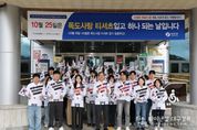 파이낸셜대구경북 김유신 기자 | 영양군은 10월 24일 오전 독도의 날을 기념해 군청사 입구에서 오도창 영양군수를 포함한 공직자 60여 명이 참석한 가운데 ‘독도 사랑 티셔츠 입기 운동’행사를 진행했다. 영양군의 공직자들부터 앞장서서 독도 사랑 티셔츠를 입고 근무하면서 독도의 날 의미를 되새기고, 온 국민 하나 되기 운동에 동참하는 모습을 보였다. 이날 행사는 지난 1900년 10월 25일 대한제국의 고종황제가 독도를 울릉도에 편입시키는 칙령 제41호를 반포한 역사적으로 뜻깊은 날을 기념하기 위해 직원들 모두 독도 사랑 티셔츠를 입고 태극기를 손에 들고 우리 땅 독도 지키기 운동에 앞장설 것을 다짐하는 계기가 됐다. 오도창 영양군수는 “독도의 날 행사를 통해 영양군민 모두가 독도에 대한 더 많은 관심과 애정을 가졌으면 한다.”라며 “‘독도 사랑 티셔츠 입기 운동’은 알고는 있지만 행동으로 실천하기 힘든 독도 사랑을 이번 기회를 통해 나타내며, 공직자부터 먼저 독도사랑에 앞장서는 모습을 보여줌으로써 우리 고유 영토의 소중함을 다시금 되새기는 순간이 됐길 바란다.”라고 말했다. [뉴스출처 : 경상북도 영양군]