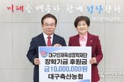 파이낸셜대구경북 김유신 기자 | 대구시교육청은 1월 16일, 대구축산농협(조합장 최성문)에서 대구인재육성장학재단에 장학금 1천만 원을 기탁한다고 밝혔다. 대구축산농협은 대구 전역의 자치단체 및 복지재단과 협력해 봉사활동, 생활물자지원 등‘지역사랑 나눔운동’을 실천해 오고 있으며, 지역 인재 육성을 위한 뜻깊은 나눔에 동참하고자 2019년부터 매년 대구인재육성장학재단에 장학금을 기탁하고 있다. 최성문 조합장은 “경제적으로 어려운 환경에 처한 학생들에게 꾸준히 장학금을 지원할 수 있도록 앞으로 더 살피고 노력하겠다.”는 뜻을 전했다. 강은희 교육감은 “학생들이 꿈과 희망을 갖고 학업에 매진할 수 있도록 도움을 주신 대구축산농협 조합장님을 비롯한 직원 여러분께 감사드린다.”며 “기탁한 장학금을 잘 활용해 학생들이 미래 인재로 성장할 수 있도록 최선을 다하겠다.”라고 말했다. [뉴스출처 : 대구교육청]
