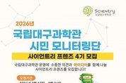 파이낸셜대구경북 김유신 기자 | 국립대구과학관(관장 이난희)은 시민의 시각에서 과학관 전시와 교육 프로그램, 관람 서비스를 체험하고 개선 의견을 제안하는 시민 참여 프로그램 ‘사이언트리 프렌즈 4기’를 모집한다. ‘사이언트리 프렌즈’는 시민이 직접 국립대구과학관 프로그램을 체험하고 모니터링 활동을 통해 다양한 의견을 제안하는 국립대구과학관 시민 참여 프로그램으로, 과학관 운영과 서비스 품질 향상을 위해 운영되고 있다. 이번 국립대구과학관 사이언트리 프렌즈 4기 모집은 3월 12일부터 3월 26일까지 진행되며, 대구·경북 지역 대학생 및 시민을 대상으로 15명 내외로 선발할 예정이다. 선발된 모니터링단은 2026년 4월부터 11월까지 약 8개월간 국립대구과학관 전시·교육·행사 등을 체험하며 관람 환경과 서비스에 대한 의견을 제시하는 활동을 수행하게 된다. 국립대구과학관 시민 모니터링단 ‘사이언트리 프렌즈 4기’ 활동참여자에게는 전시관 무료 관람(본인 및 동반 3인), 무료 주차 혜택이 제공되며, 활동 완료 시 수료증과 기념품이 지급된다. 또한 우수 활동자에게는 우수활동 표창이 수여될 예정이다. &nb