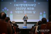 파이낸셜대구경북 기자 | (재)영덕복지재단은 나눔을 실천하고 후원에 앞장서 온 기부자에게 감사의 마음을 전하기 위해 지난 16일 영덕무형문화재 전수관에서 ‘제3회 기부자 감사의 날 행사’를 개최했다. 이번 행사에 초대된 기부자들은 지난 3월 말 경북산불로 큰 피해를 본 이재민들의 빠른 일상 복귀와 생활 터전 재건을 위해 온정의 손길을 내밀어 피해 주민들에게 큰 희망이 된 바 있다. 행사는 식전 공연을 시작으로 개회식, 유공자 표창, 활동 보고 순으로 이뤄졌으며, 유공자 표창은 지역사회 나눔문화 확산에 이바지한 공로로 영덕아산병원 박정규 원장과 메타세콰이어 장명진 대표가 영덕군수 감사패를, 지속적인 나눔에 참여한 오션비치 박재선 대표가 영덕군의장 감사패를 받았다. 이어 베스트일레븐 박정선 대표, 강구농협 신상헌 조합장, 에이치앤티 고기한 대표, 미주정밀 이중재 대표, 벽진산업 권재득 대표가 영덕복지재단 이사장 표창패를 받았다. 연간 활동 보고에는 올 한 해 후원금이 산불 이재민 지원에 사용된 내역을 비롯해 관내 취약계층 가족여행 지원, 저출생 극복을 위한 인식 개선 프로그램 등 재단의 주요 사업 결