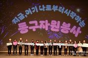 파이낸셜대구경북 김유신 기자 | 2025년 동구자원봉사자대회가 지난 16일 아양아트센터에서 개최됐다. ‘지금 여기, 나로부터 시작하는 자원봉사!’라는 슬로건으로 진행된 이날 행사는 600여명의 자원봉사단체 회원들이 한자리에 모여 축하공연, 영상 상영, 자원봉사 유공자 표창 등의 순서로 진행됐다. 홍창식 동구자원봉사센터 이사장은 “올 한 해 동안 우리 지역 곳곳에서 따뜻한 손길을 내밀고, 보이지 않는 곳에서 묵묵히 빛이 되어주신 자원봉사자 여러분께 감사의 마음을 전하며, 2026년에도 행복과 희망을 주는 동구자원봉사센터가 되기 위해 최선의 노력을 다하겠다”고 말했다. 윤석준 동구청장은 “2025년 한 해 동안 보여주신 자원봉사자 여러분의 헌신에 깊이 감사드리며, 이 행사를 통해 지역사회에 자원봉사가 더욱 확산되고, 나눔의 문화가 생활 속에 정착되는 계기가 되길 바란다”고 했다. [뉴스출처 : 대구시동구청]