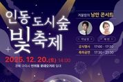 파이낸셜대구경북 기자 | 구미시는 오는 12월 20일 인동로데오거리 일원에서 청춘의 에너지와 음악이 어우러지는 '2025년 인동도시숲빛축제'를 개최한다. 이번 축제는 젊은 도시로서 도심에 활력을 더하고 겨울철 야외 문화 향유 기회를 넓히기 위해 마련됐다. 행사는 오후 2시 30분부터 밤 9시 30분까지 인동로데오거리 특설무대에서 진행되며, 12월 18일부터 30일까지는 크리스마스 시즌을 맞아 경관조명을 설치해 시민과 방문객을 위한 포토스폿도 운영한다. 오후 2시 30분부터 5시까지는 레크리에이션과 지역 버스킹 밴드 공연, 뮤지컬 갈라쇼 등이 이어져 어린이부터 어른까지 온 가족이 함께 즐길 수 있는 프로그램을 선보인다. 오후 5시부터는 공식행사를 시작으로 레트로 댄스 가수 박남정과 채연의 무대, 서커스 공연, 디제잉까지 다채로운 라이브 공연이 펼쳐져 겨울밤 도심을 열정으로 채울 예정이다. 김장호 구미시장은 “인동도시숲빛축제는 젊은 도시 구미의 활력을 시민과 함께 나누는 자리”라며 “많은 시민과 관광객이 인동로데오거리를 찾아 음악과 빛이 어우러진 겨울 축제를 즐기길 바란다”고 말했다.