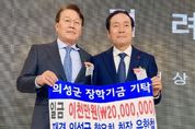 파이낸셜대구경북 기자 | 재단법인 의성군인재육성재단(이사장 김주수 의성군수)은 지난 15일 재경의성군향우회 유한철 회장(서울승합 대표)이 지역 인재 육성을 위해 사용해 달라며 장학금 2천만 원을 의성군에 전달했다고 밝혔다. 재경의성군향우회 회장이자 안사면 명예면장을 맡고 있는 유한철 회장은 2013년부터 현재까지 장학금 9천만 원을 비롯해 불우이웃돕기 성금 1천 5백만 원, 고향사랑기부금 5백만 원을 기부하며 꾸준한 나눔을 실천해 오고 있다. 이와 함께 코로나19 이후 5년 만에 열린 제66회 의성군민체육대회에 1천만 원 상당의 물품을 지원했으며, 지난 3월 대형 산불로 피해를 입은 의성군을 돕기 위해 산불 피해 지원 성금 1억 5천만 원을 기탁하는 등 각종 지역 현안 해결에도 적극 동참하며 각별한 고향 사랑을 보여주고 있다. 유한철 회장은 “지역 학생들이 다양한 재능을 발견하고 학업에 전념할 수 있는 환경이 조성되기를 바란다”고 전했다. 김주수 의성군수는 “고향 발전을 위한 지속적인 관심과 따뜻한 나눔에 깊이 감사드린다”며 “기탁해 주신 장학금은 의성의 학생들이 미래를 이끌 훌륭한 인재로 성장할