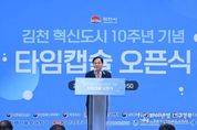 파이낸셜대구경북 김유신 기자 | 김천시가 혁신도시 준공 10주년을 맞아 율곡동 일원에서 추진한 ‘타임캡슐 개봉행사’와 ‘K-INNO 페스타’가 지난 10월 15일 시민들의 뜨거운 호응 속에 성황리에 마무리됐다. 이번 행사는 혁신도시 조성 10주년을 기념하는 동시에, 이전 공공기관 간의 소통과 화합을 통해 새로운 도약을 다짐하는 의미 있는 자리로 마련됐다. 특히 ‘타임캡슐 행사’와 ‘K-INNO 페스타’가 같은 날 함께 진행되며 그 의미를 더했다. 2016년 혁신도시 준공을 기념해 매설했던 타임캡슐을 개봉하는 행사에서는 김천시와 혁신도시로 이전한 12개 공공기관의 상징물과 기록물들을 보며, 지난 10년간의 변화와 발전을 되돌아보는 특별한 시간이 됐다. 현장을 찾은 한 기관 관계자는 “이런 물품들이 타임캡슐에 담겨 있었는지 몰랐는데, 직접 보니 감회가 새롭다.”라며, “다음 타임캡슐이 개봉될 때쯤엔 지금보다 더 발전한 혁신도시가 되기를 바란다.”라고 소감을 전했다. 타임캡슐 행사가 마무리된 뒤에는 본격적인 시민 참여 프로그램이 이어졌다. 한국전력기술 앞마당에서는 지역 농가와 소상공인들이 참여한 직거래