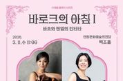 파이낸셜대구경북 기자 | 안동문화예술의전당의 올해 브런치 콘서트는 바로크에서 근현대에 이르기까지, 클래식 음악이 걸어온 시간을 따라가는 시대별 시리즈로 구성된다. 매월 둘째 주 수요일 아침에 진행되는 이번 시리즈의 첫 무대, 〈바로크의 아침Ⅰ – 바흐와 헨델의 칸타타〉가 오는 3월 11일 오전 11시 안동문화예술의전당 백조홀에서 열린다. 바로크 시대를 대표하는 작곡가 요한 제바스티안 바흐와 게오르크 프리드리히 헨델의 작품을 통해 바로크 음악 특유의 정교한 구조와 풍부한 선율, 섬세한 표현을 만날 수 있다. 연주는 바로크 오보에 신용천, 바로크 바순 김혜민을 중심으로 하프시코드 아렌트 흐로스펠트가 함께하는 ‘서울바로크 앙상블’과 소프라노 윤지가 참여해 바로크 특유의 섬세한 표현과 음색을 선보인다. 특히 바로크 관악기의 부드러우면서도 깊이 있는 음색과 하프시코드의 섬세한 화성이 어우러져 당시 음악의 음향적 특징을 생생하게 전달할 예정이다. 또한 이준형 평론가가 해설로 참여해 작품의 배경과 음악적 특징을 쉽고 흥미롭게 풀어내며, 클래식 음악을 처음 접하는 관객부터 애호가까지 누구나 부담 없이 공연을 즐길 수 있는 시간이 될 것