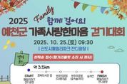 파이낸셜대구경북 기자 | 예천군에서는 오는 25일 오전 9시 30분부터 호명읍 신도시패밀리파크 잔디광장에서 ‘2025 예천군 가족사랑한마음 걷기대회’ 가 열린다. 예천군체육회가 주최·주관하고 예천군이 후원하는 이번 걷기 행사는 패밀리파크 잔디광장에서 출발해 범우리공원과 실개천을 거쳐 다시 패밀리파크 잔디광장으로 돌아오는 약 3.5km 코스로 진행된다. 참가 제한이나 별도 신청 없이 누구나 행사 당일 오전 9시 30분까지 행사장을 찾아 현장 접수하면 되며, 선착순으로 진행되는 접수는 참가 리플릿이 소진되면 마감된다. 걷기 코스 완주와 더불어 참가 리플릿을 활용한 스탬프 미션에 성공한 모든 참가자에게 완보기념품이 증정되고 인생네컷 가족사진 만들기 및 놀이체험 부스 운영, 댄스공연 및 버블쇼 등 풍성한 프로그램도 준비되어 있다. 또한 걷기 코스 안에 댄스존, 비누방울존, 어린이보물찾기존 등 다양한 이벤트존이 마련되어 있어 걷는 즐거움을 배가시키고, 행사 막바지에는 푸짐한 경품추첨도 예정되어 있다. 이철우 예천군체육회장은 “이번 대회가 가족 사랑과 건강을 되새기고, 지역 주민 간 더욱 친밀한