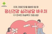 파이낸셜대구경북 기자 | 경산시는 우울, 불안 등 정서적 어려움이 있는 시민에게 대화 기반의 전문심리상담 서비스를 제공하는 '정신건강 심리상담 바우처사업'을 시행한다. 이 사업은 전문적인 심리상담 서비스 바우처를 제공하여 시민의 마음 건강을 돌보고 자살을 예방하며, 정신질환을 사전 예방하는 것을 목적으로 한다. 지원 대상은 ▲정신건강복지센터, 대학교상담센터, 청소년 상담복지센터, Wee센터 등에서 심리상담이 필요하다고 인정하여 의뢰서를 발급받은 자 ▲정신의료기관에서 심리상담이 필요하다고 인정하여 소견서를 발급받은 자 ▲국가 건강검진 중 정신건강 검사 결과에서 중간 정도 이상의 우울이 확인된 자 ▲자립 준비 청년 및 보호 연장 아동 ▲'동네의원 마음 건강 돌봄 연계 시범 사업'통해 의뢰된 자 ▲재난 피해자(본인, 유가족) ▲ 정신건강복지센터·자살예방센터 등록 회원이다. 대상자는 증빙서류를 지참하여 주소지 읍·면·동 행정복지센터를 방문하거나 온라인 복지포털(복지로)에서 신청할 수 있다. 선정된 대상자에게는 바우처 생성일로부터 120일 이내 대화 기반의 전문 심리상담 서비스를 총 8회 이용할 수 있는